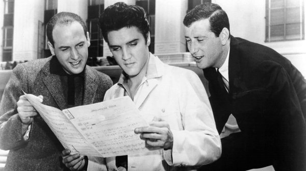 | Leiber on the left, Stoller on the right, some singer they apparently worked with in the middle. |
