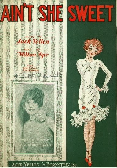 Another Yellen & Ager classic is "Ain't She Sweet," written in 1927. One of the first recordings was by Ben Bernie and His Hotel Roosevelt Orchestra.