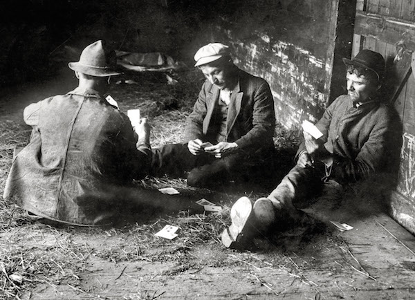 There were several recordings of it around 1928 including versions by Hobo Jack Turner, Vernon Dalhart, John Bennett, Arthur Fields and Harry McClintock, who is best known for his song "Big Rock Candy Mountain," another important contribution to the Hobo Hit Parade. Later, Al Jolson starred in a movie called Hallelujah. I'm a Bum.Carl Sandburg in The American Songbag, wrote "This old song heard at the water tanks of railroads in Kansas in 1897 and from harvest hands who worked in the wheat fields of Pawnee County, was picked up later by the [International Workers of the World] who made verses of their own for it, and gave it a wide fame."