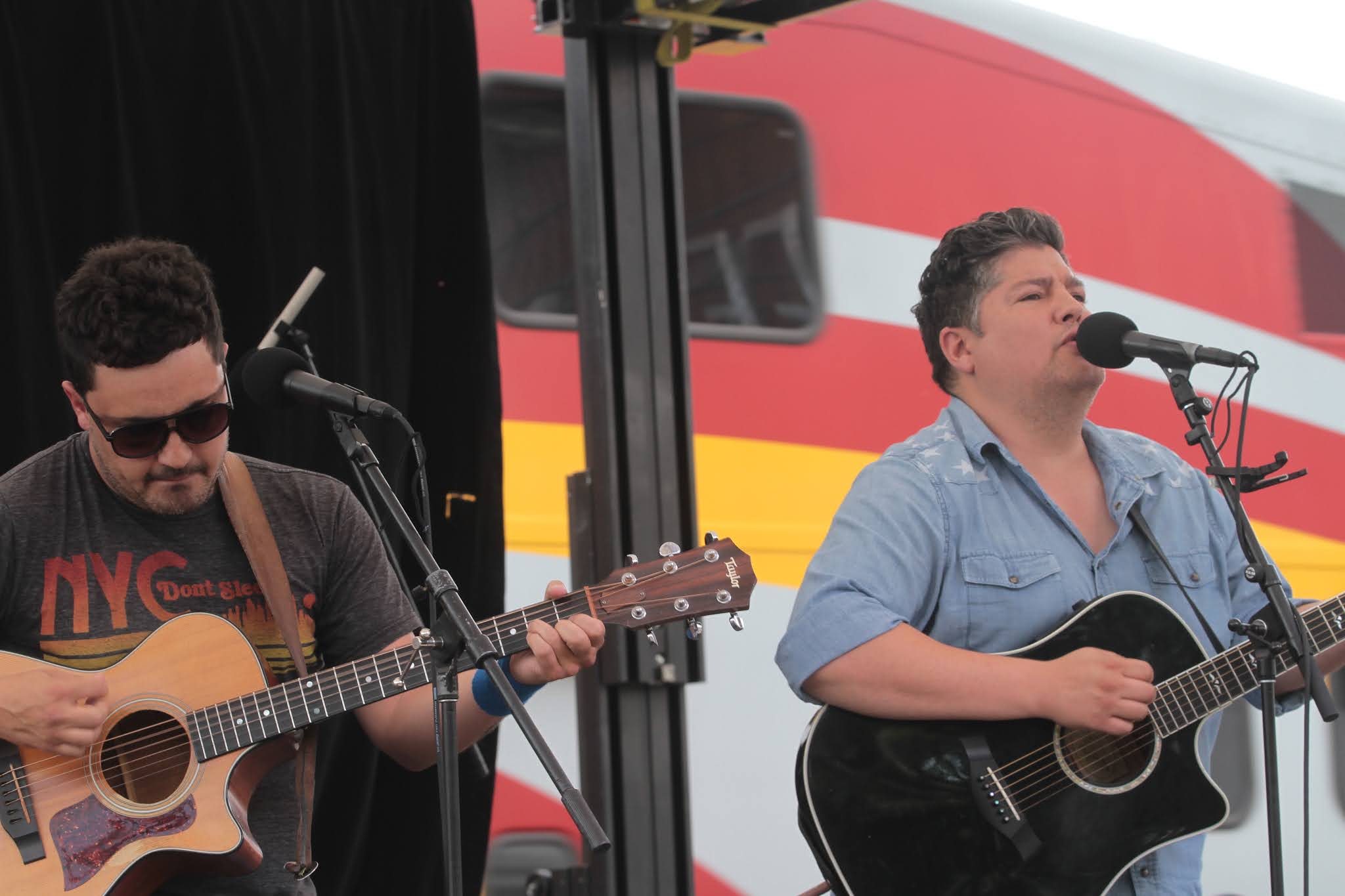 “The effect of the pandemic on musicians and the whole artistic community has been awful,” Abeyta said. “You see prominent local musicians out busking or working construction, doing things they shouldn’t have to do just to survive. I’m really thankful to be able to do something musical again.” (Abeyta, in sunglasses playing in his band Sol Fire with his brother Buddy Abeyta at a previous Make Music Day in photo at left.)